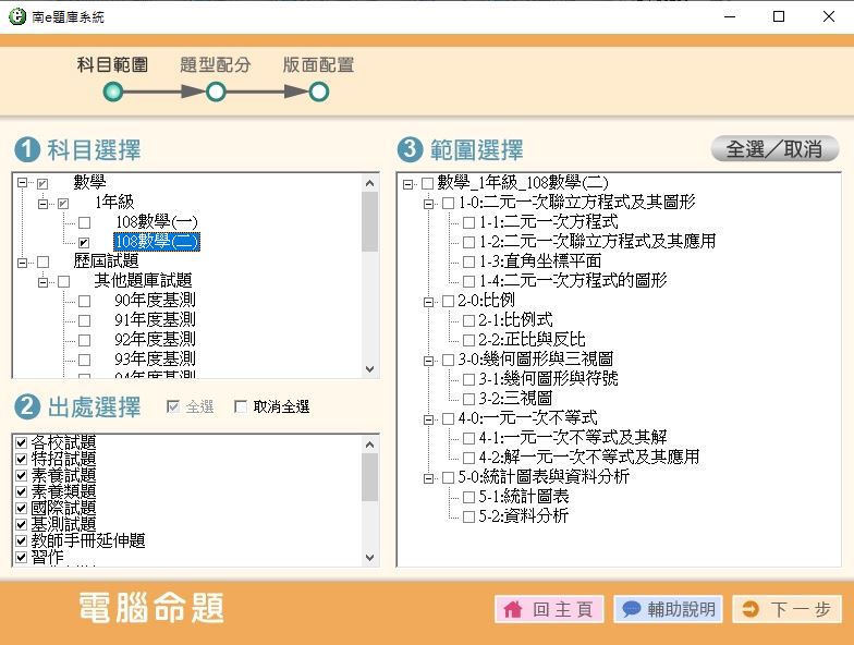 108學年下學期 國中命題光碟 南一版 數學(108課綱) 1年級 題庫光碟