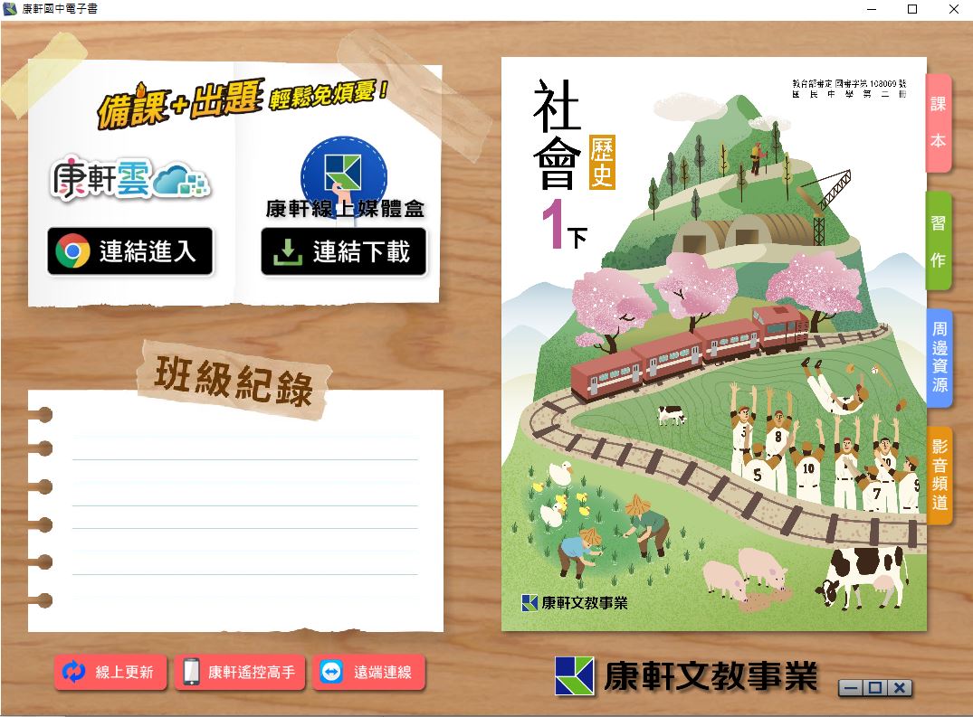 108學年下學期 國中 康軒版 歷史電子書 1年級(含課本、習作含解答)教學光碟DVD版