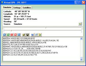 with any GPS mapping software. It operates in two modes: simulator mode